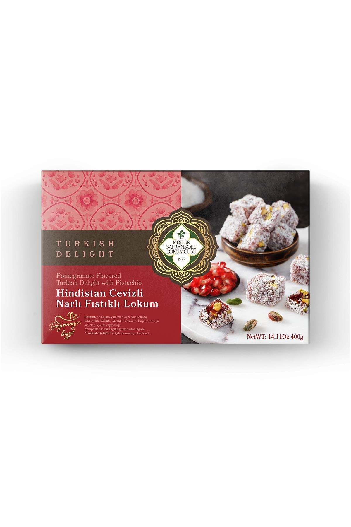 GIFT DELIGHTTurkish Delight With Pomegranate Flavour And Pistachio Covered With Coconut 400 Gr